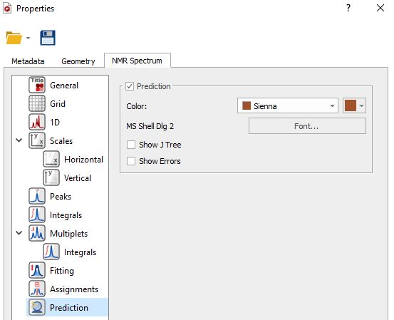 Properties Double clicking on the predicted spectrum will display the 'Properties' dialog box: