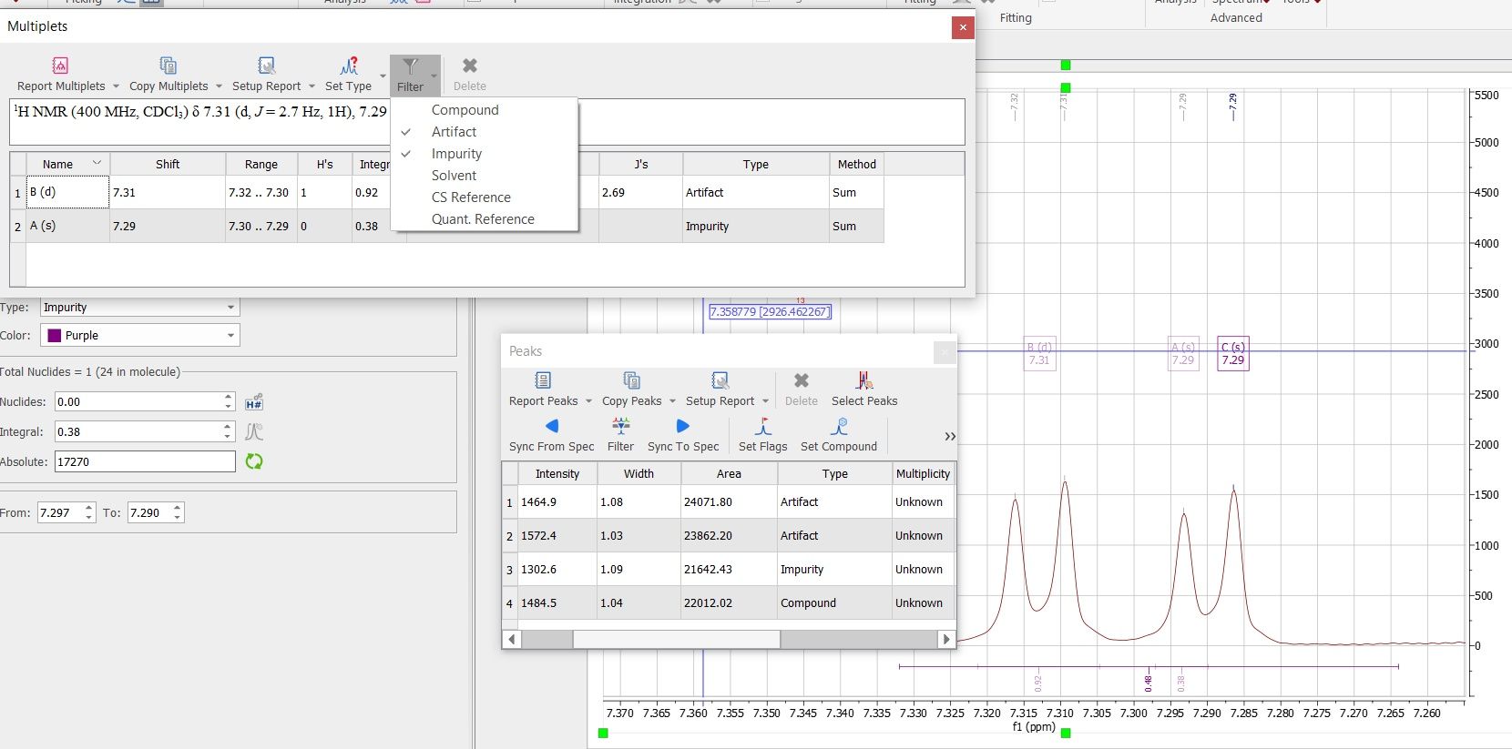 << Click to Display Table of Contents >> Navigation: Manual_HTML_Mnova_15 > Multiplets Table and Reports |