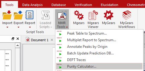无需 qNMR 插件的许可证即可运行这个新脚本。您只需要 NMR 模块的许可证。该脚本位于 "工具/NMR 工具 "菜单下:
