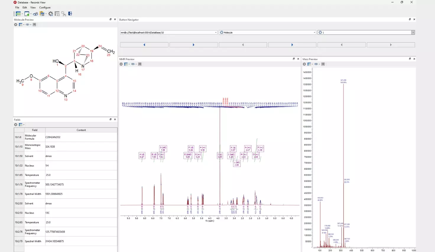 集成在Mnova中的专业数据库,用于高效共享存储分子结构、NMR、LC-MS、GC-MS和其他Mnova对象。